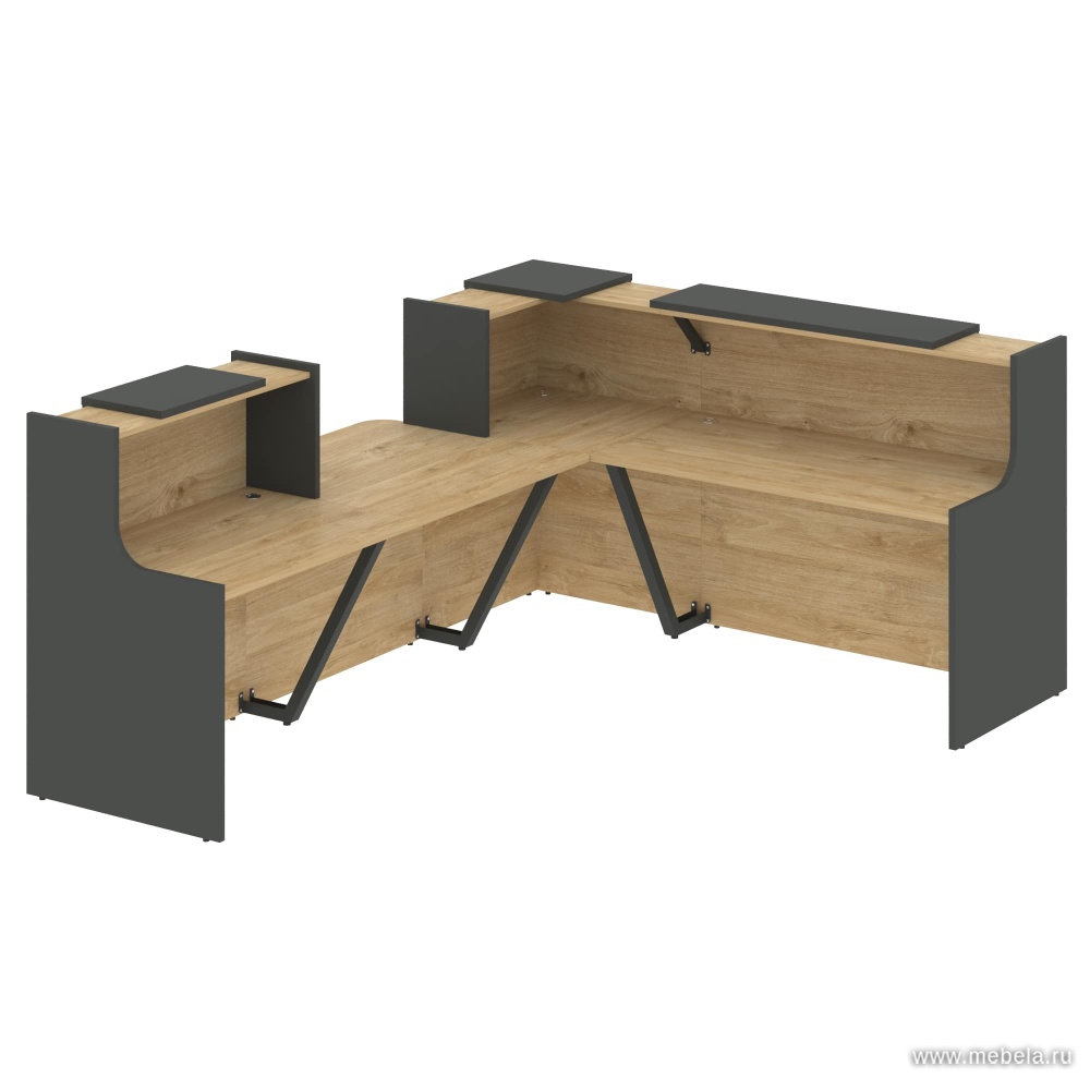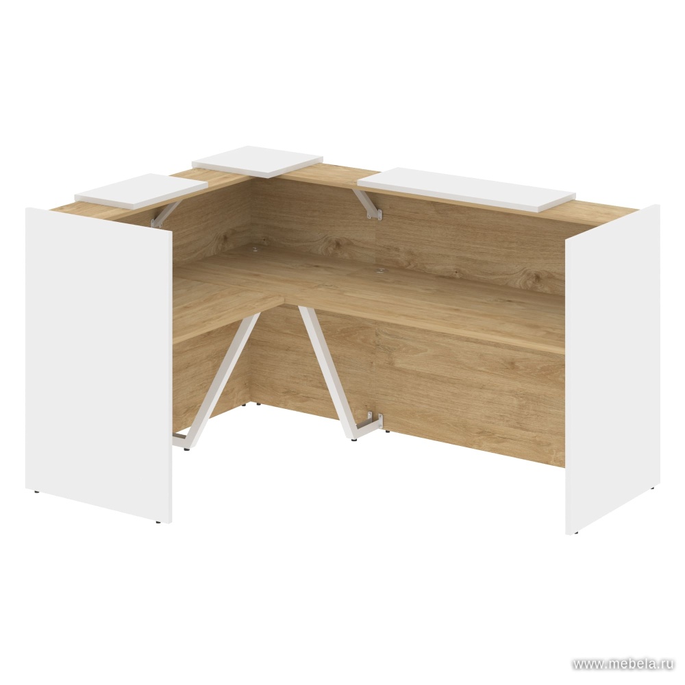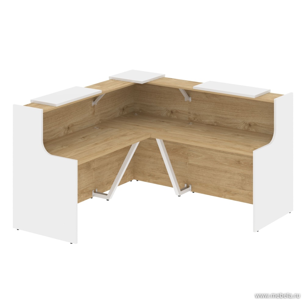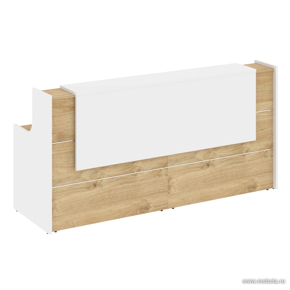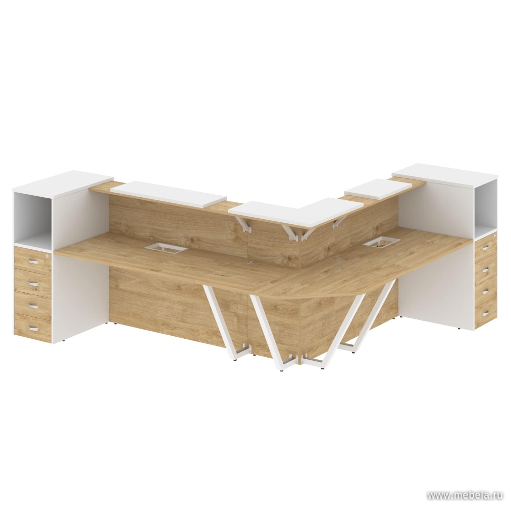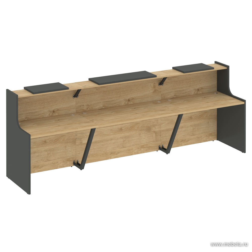 Ресепшн Onix в цвете тиквуд выполнена в эргономичном и современном стиле. Оригинальные геометрические модули и возможность объединения нескольких контрастных декоров придают стойке визуальную легкость и стиль. Модные цвета древесного декорирования в сочетании с белым цветом опор столешницы и топа освежают интерьер. ...