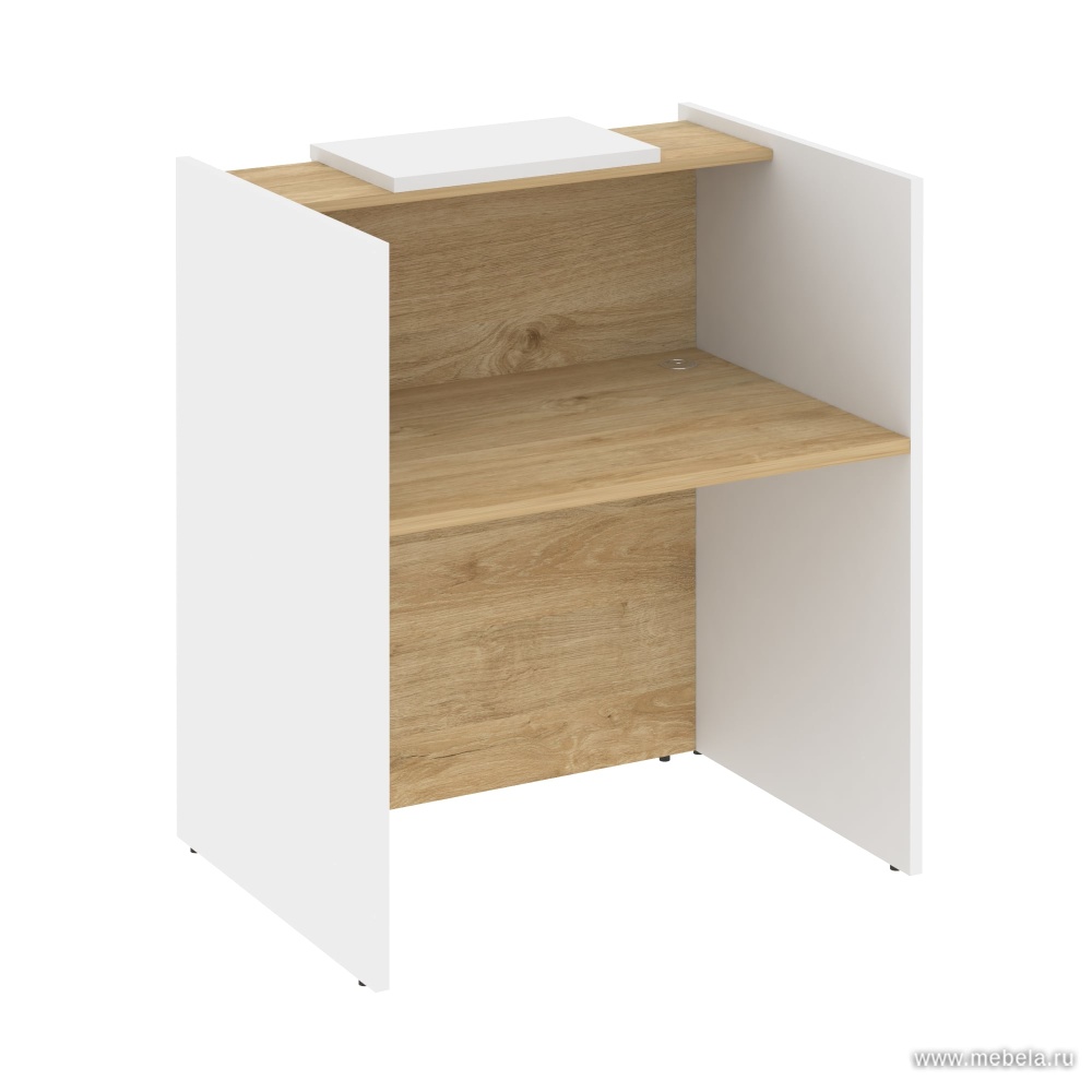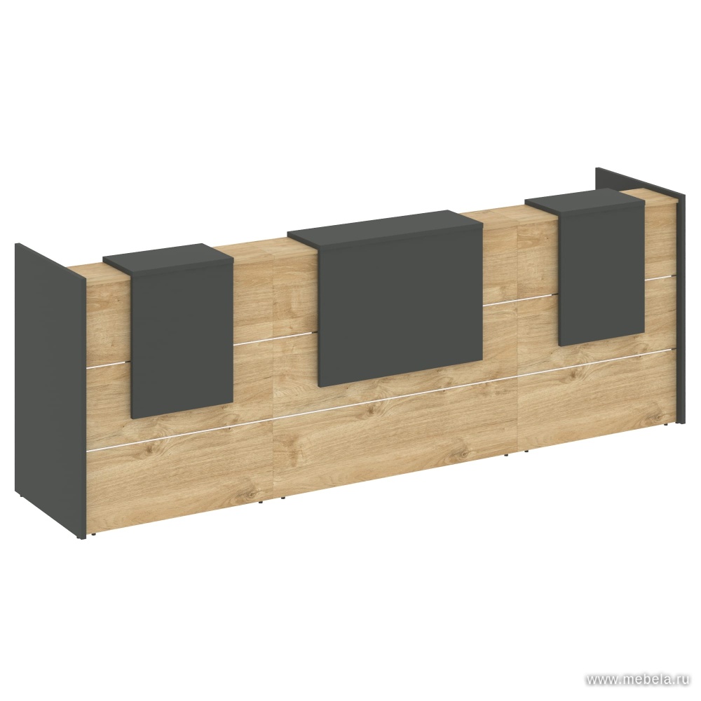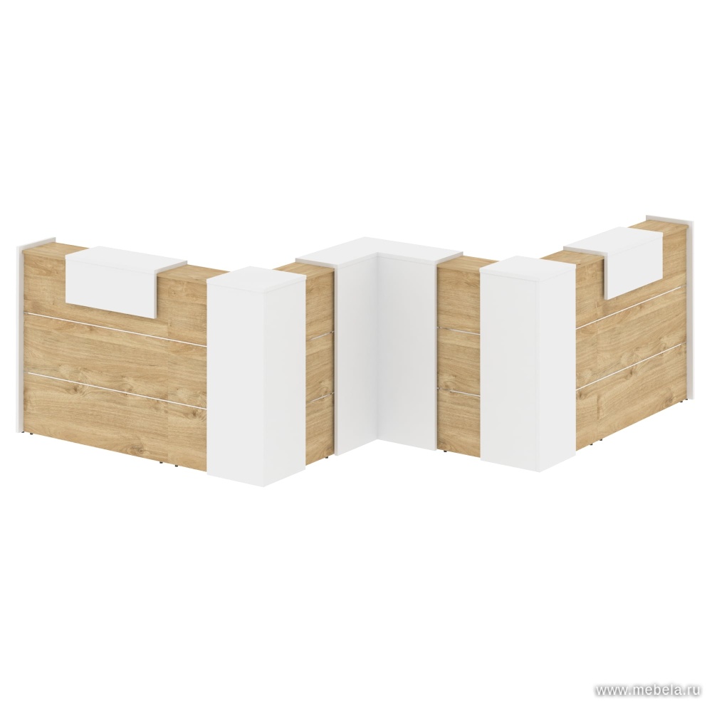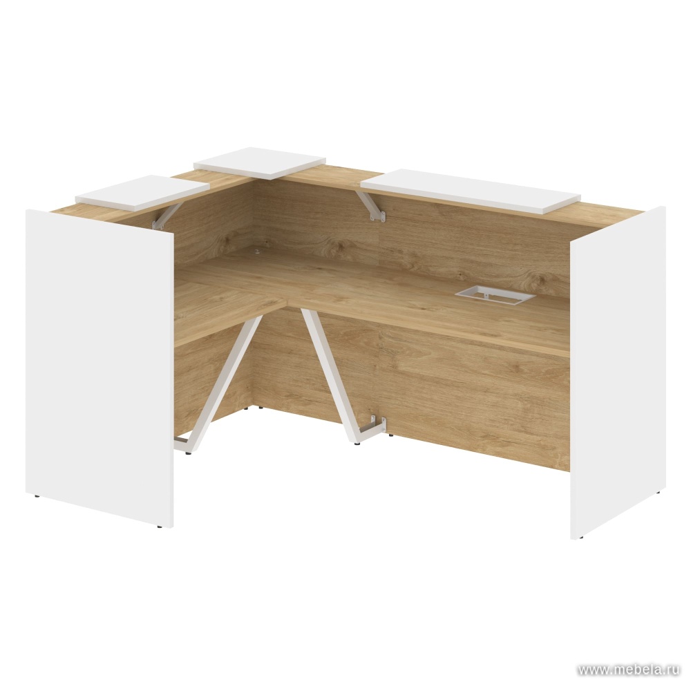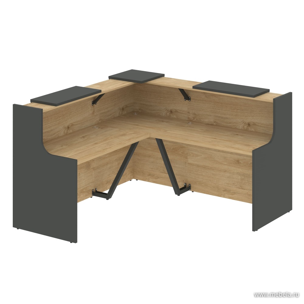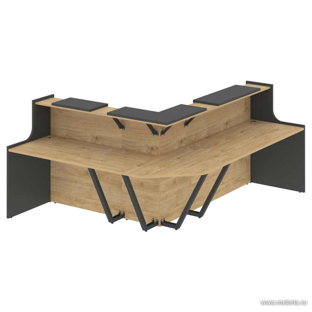 Ресепшн Onix в цвете тиквуд выполнена в эргономичном и современном стиле. Оригинальные геометрические модули и возможность объединения нескольких контрастных декоров придают стойке визуальную легкость и стиль. Модные цвета древесного декорирования в сочетании с белым цветом опор столешницы и топа освежают интерьер. ...