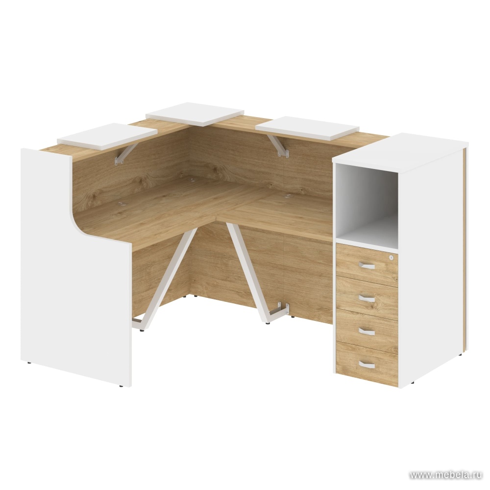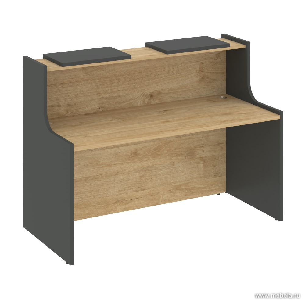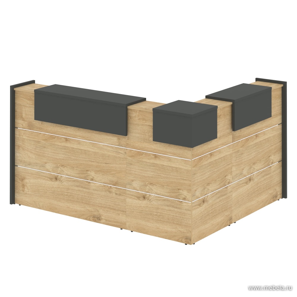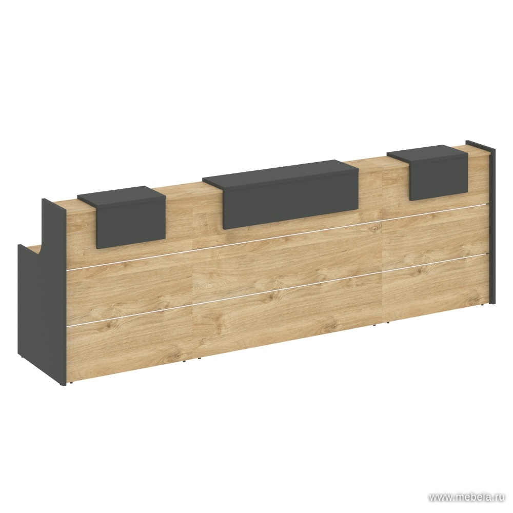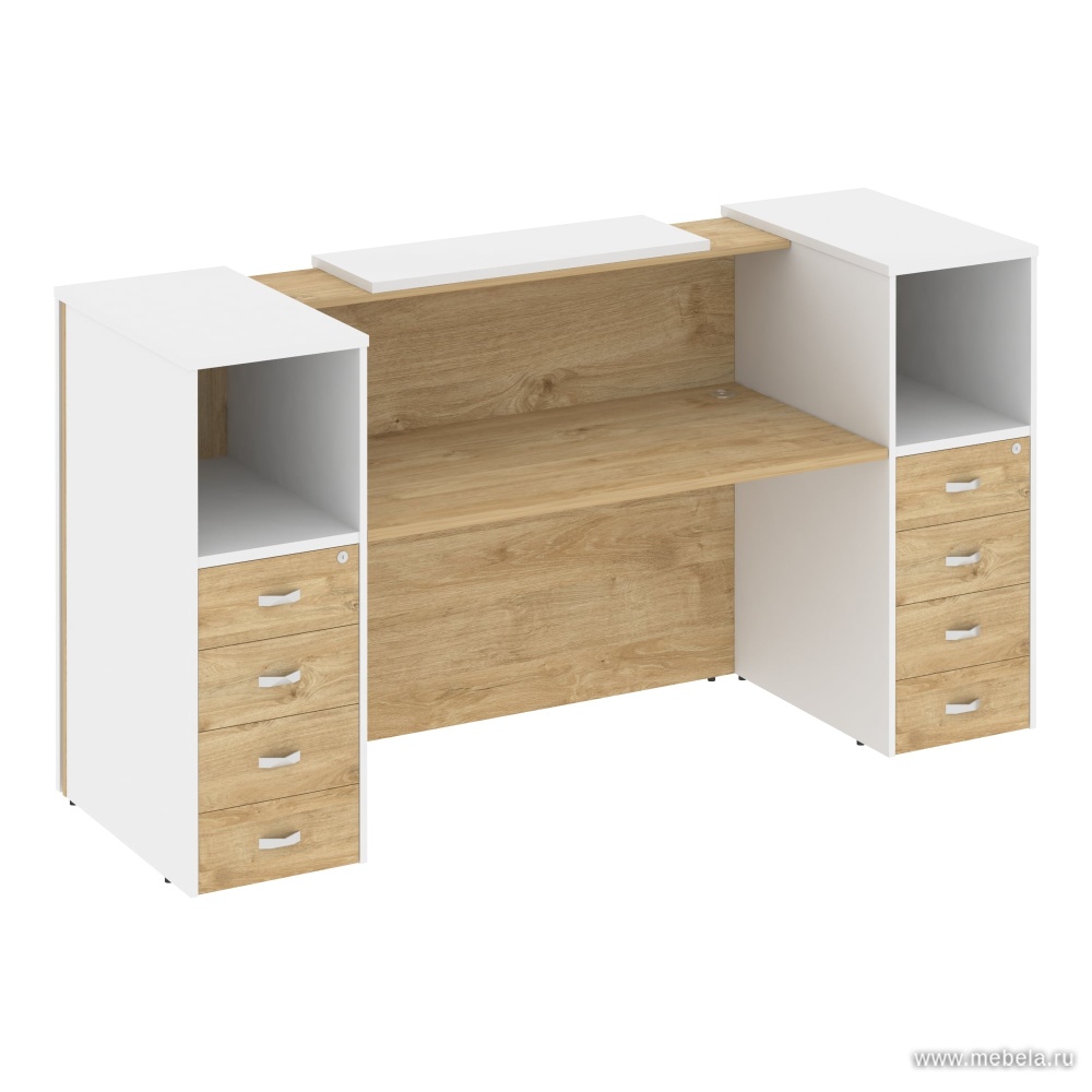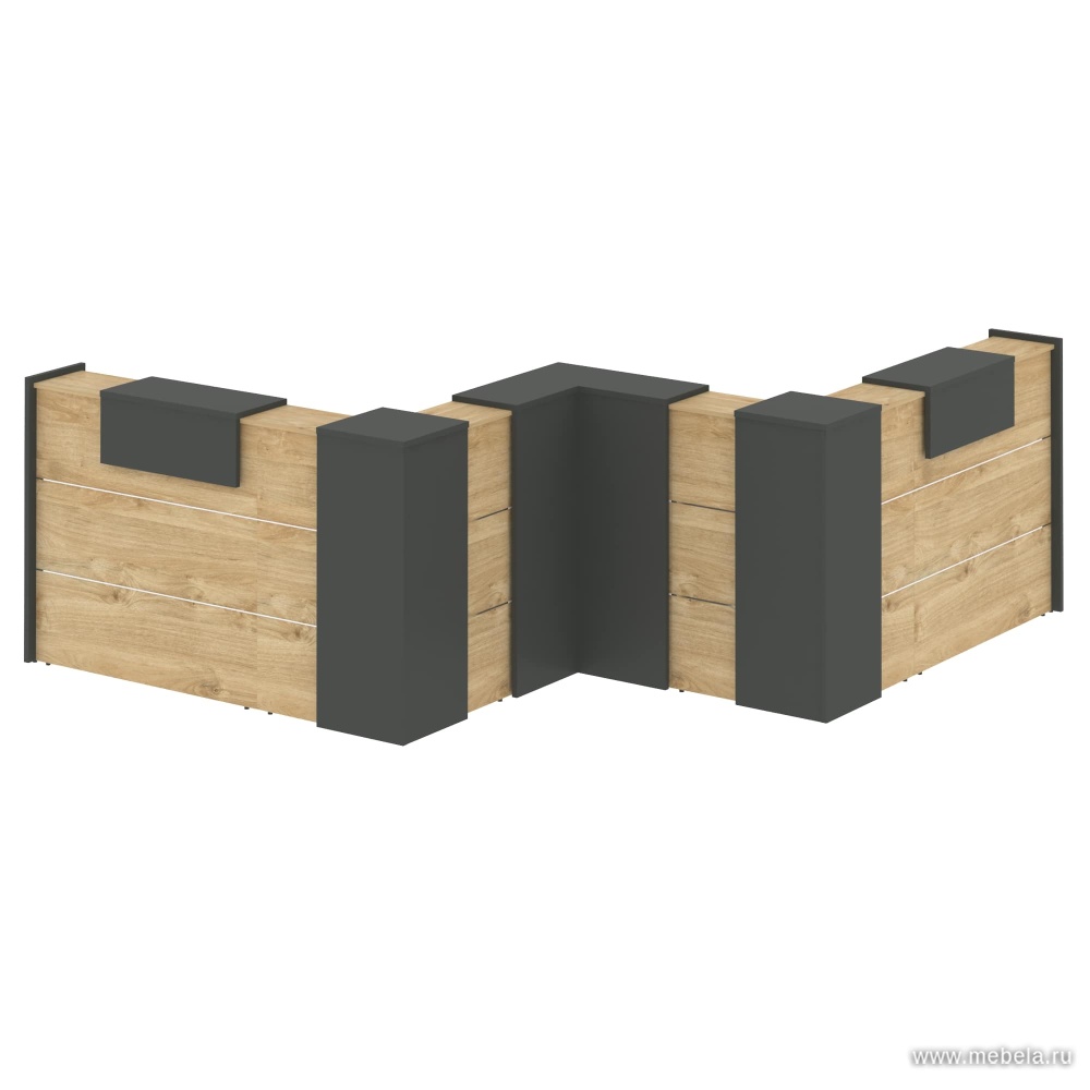 Ресепшн Onix в цвете тиквуд выполнена в эргономичном и современном стиле. Оригинальные геометрические модули и возможность объединения нескольких контрастных декоров придают стойке визуальную легкость и стиль. Модные цвета древесного декорирования в сочетании с белым цветом опор столешницы и топа освежают интерьер. ...