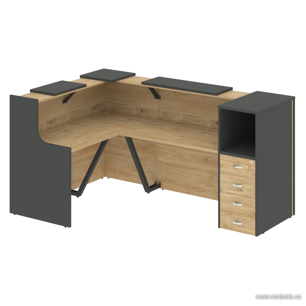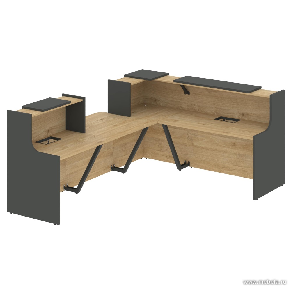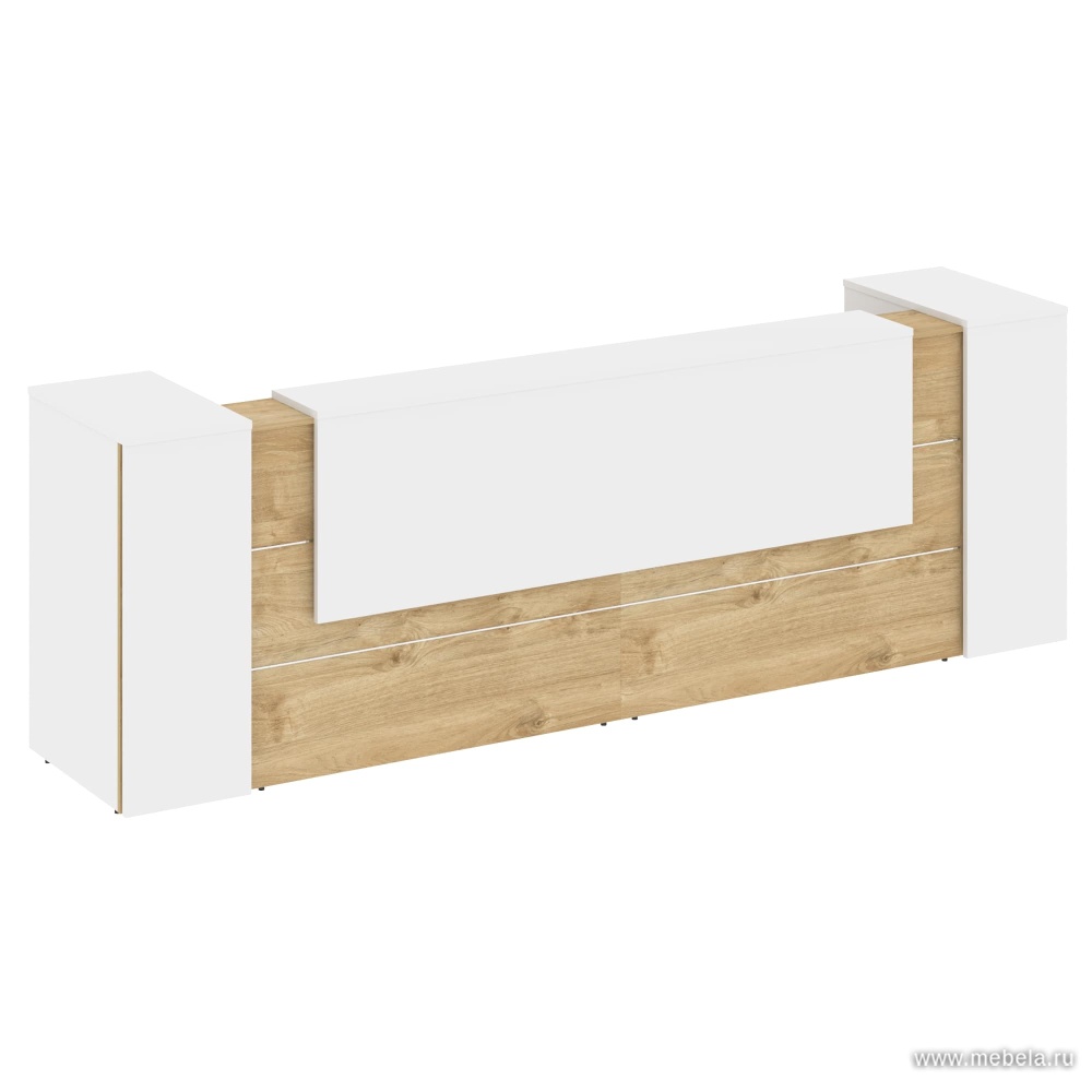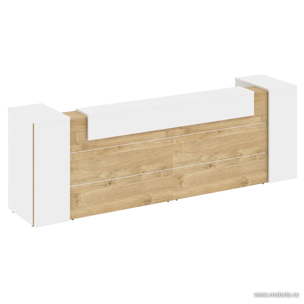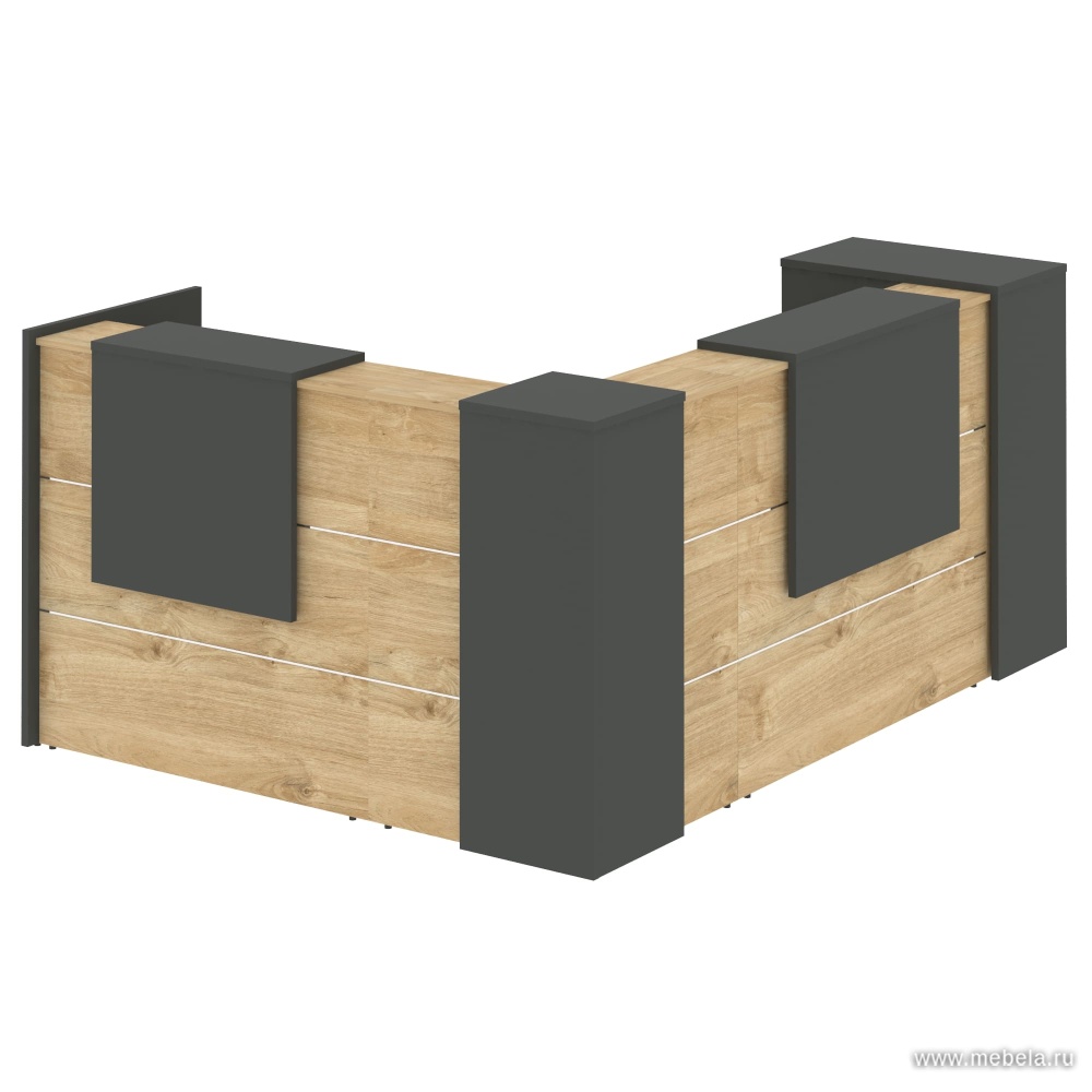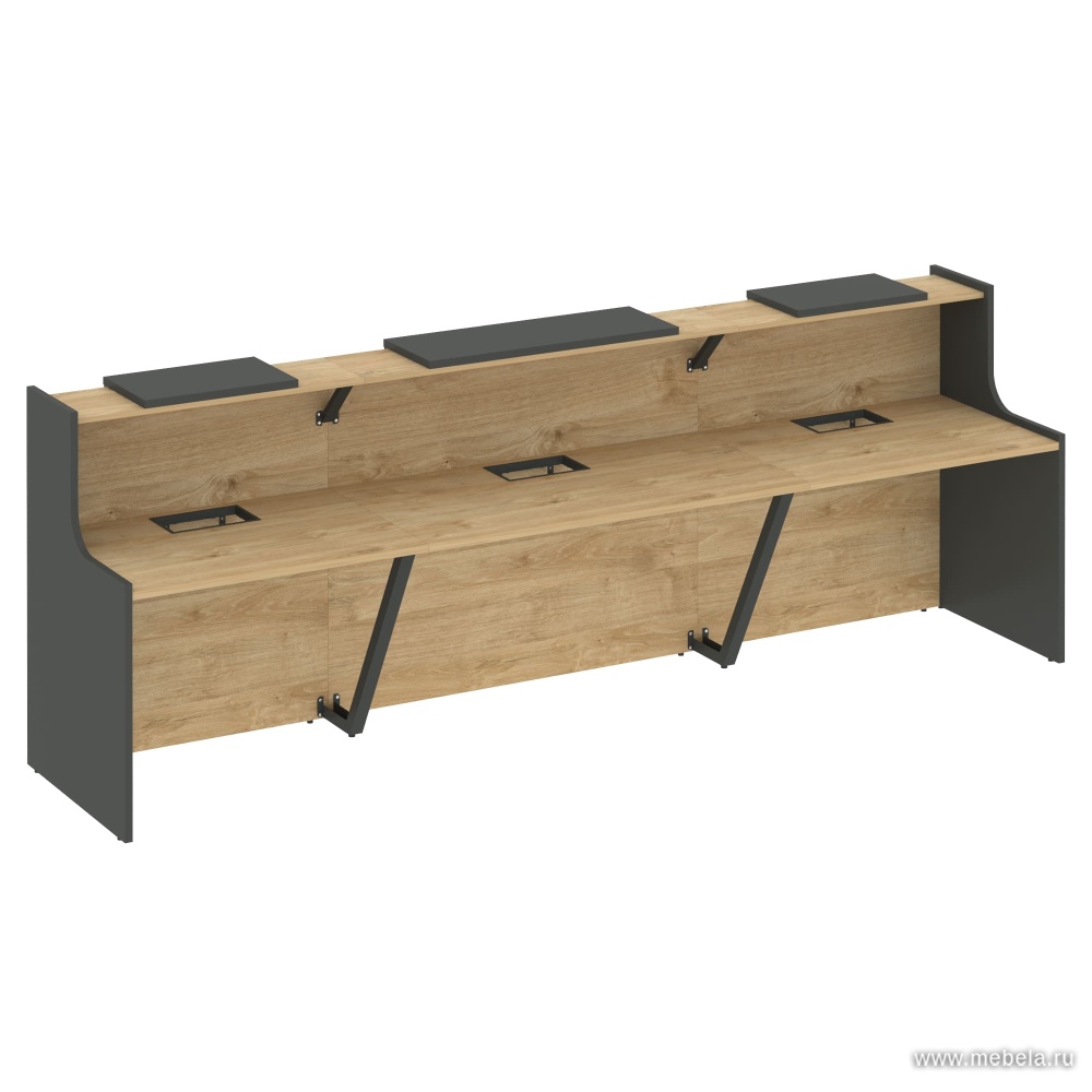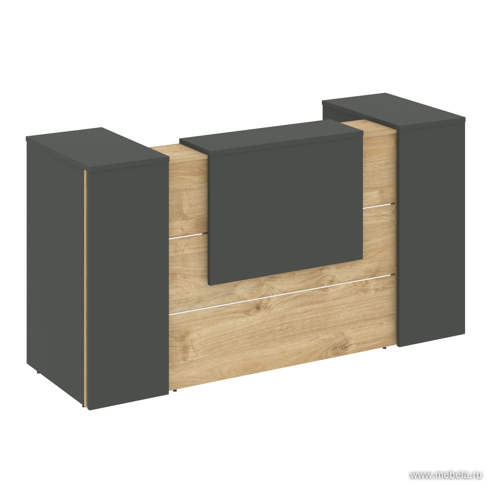 Ресепшн Onix в цвете тиквуд выполнена в эргономичном и современном стиле. Оригинальные геометрические модули и возможность объединения нескольких контрастных декоров придают стойке визуальную легкость и стиль. Модные цвета древесного декорирования в сочетании с белым цветом опор столешницы и топа освежают интерьер. ...