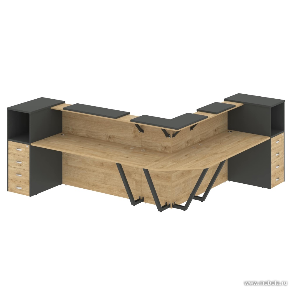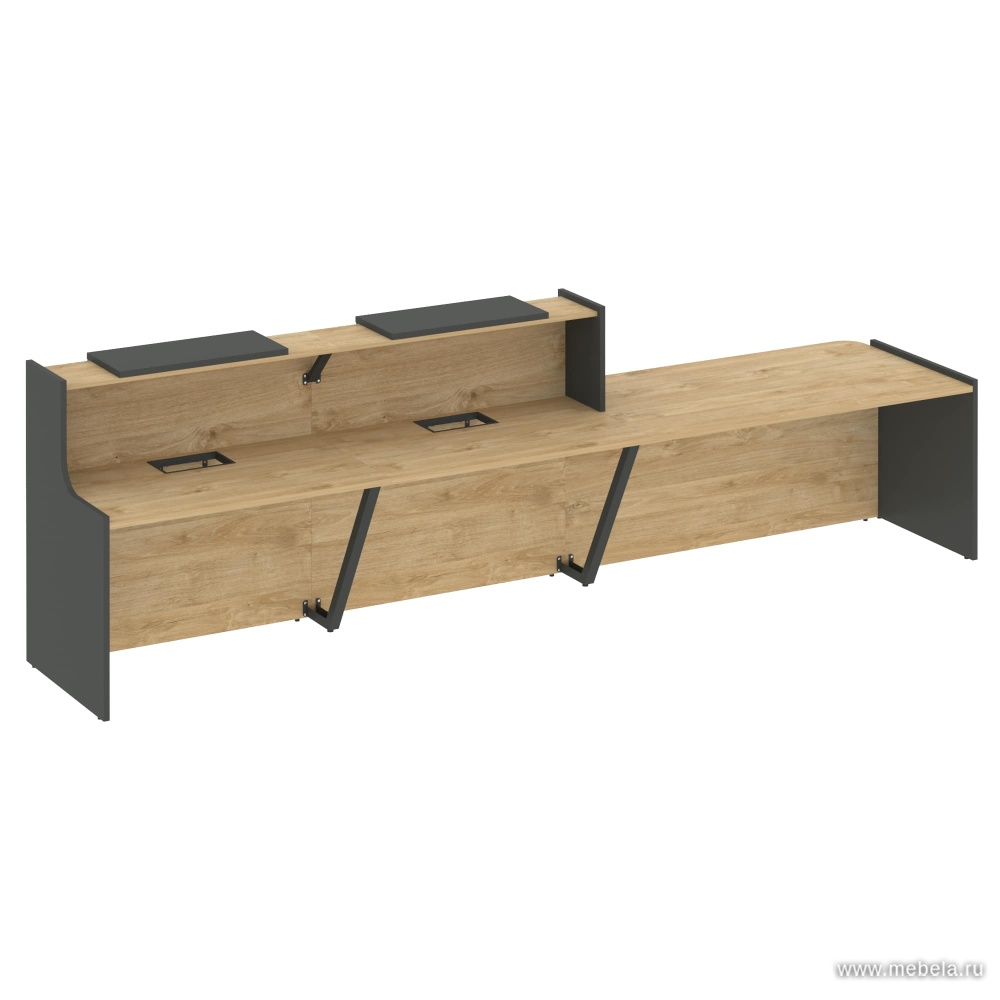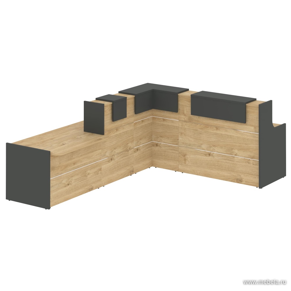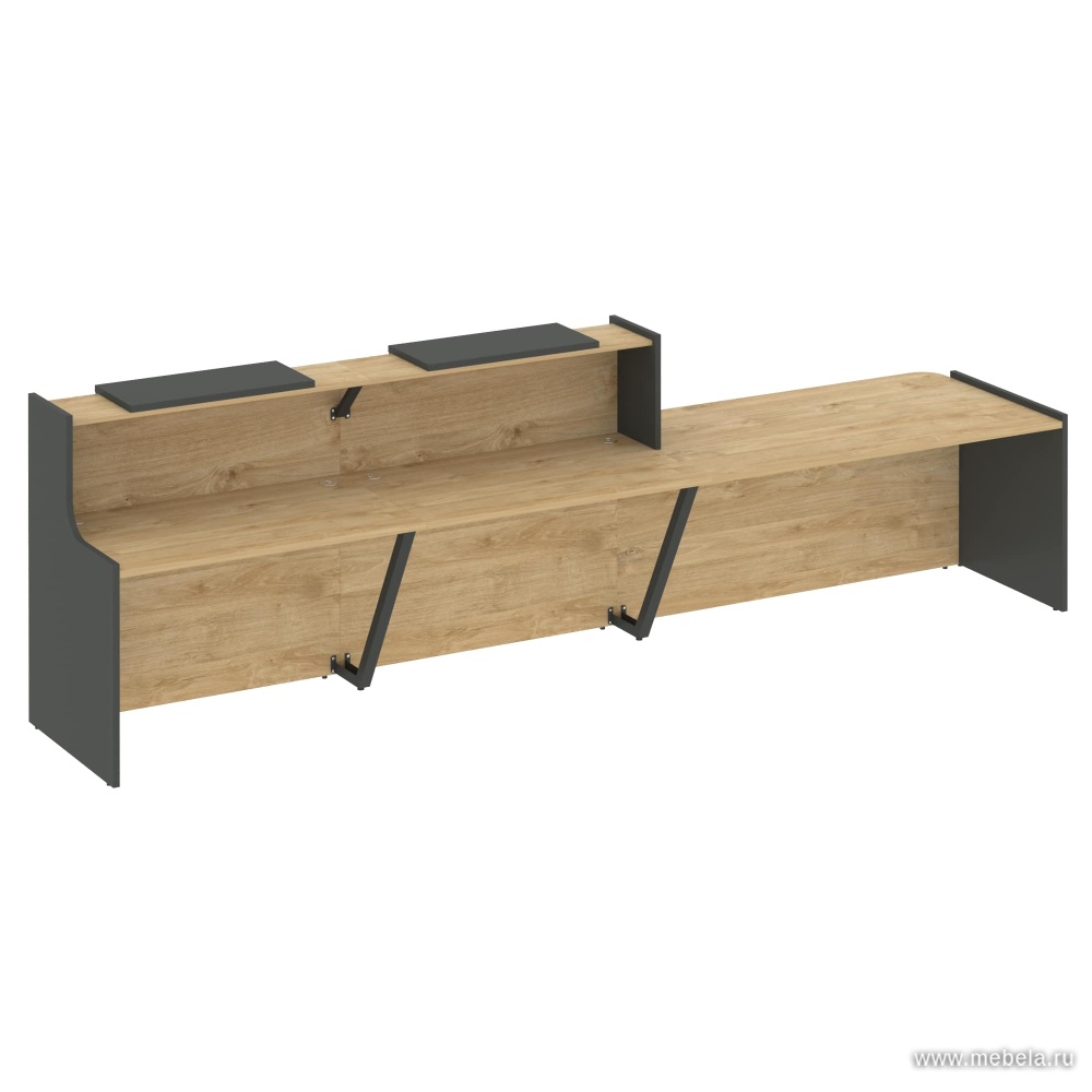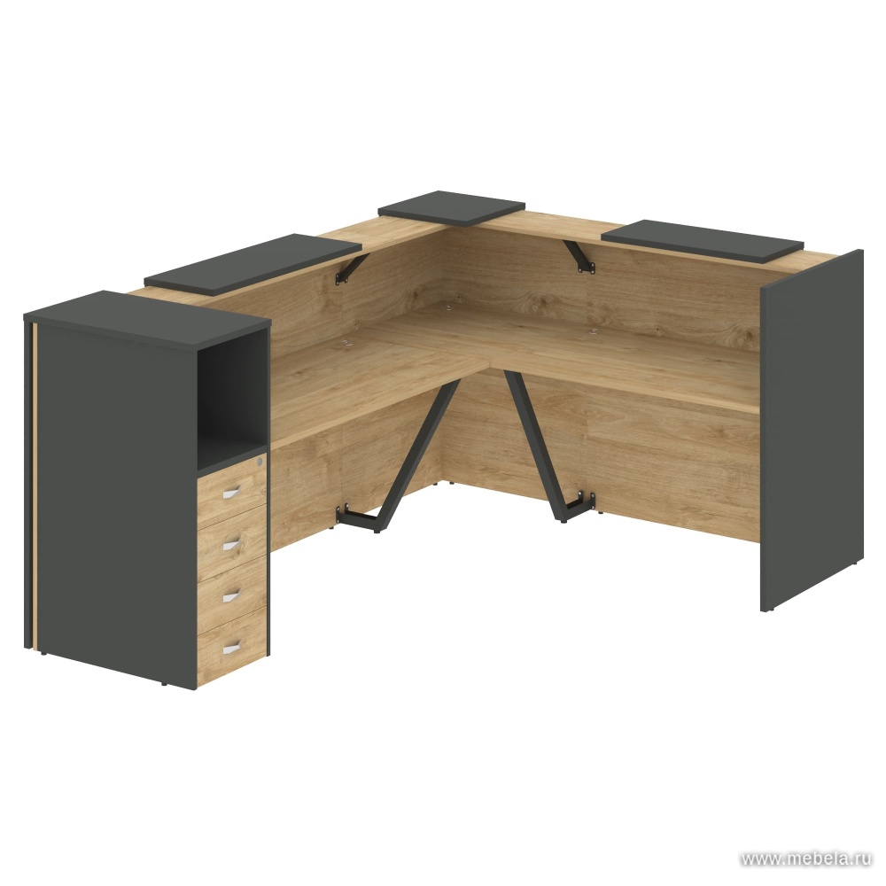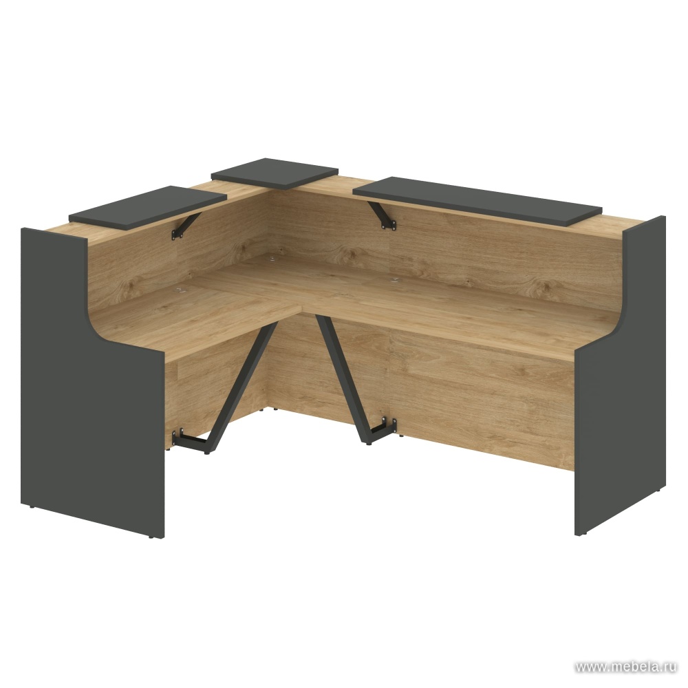 Ресепшн Onix в цвете тиквуд выполнена в эргономичном и современном стиле. Оригинальные геометрические модули и возможность объединения нескольких контрастных декоров придают стойке визуальную легкость и стиль. Модные цвета древесного декорирования в сочетании с белым цветом опор столешницы и топа освежают интерьер. ...