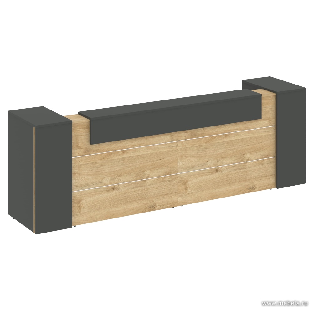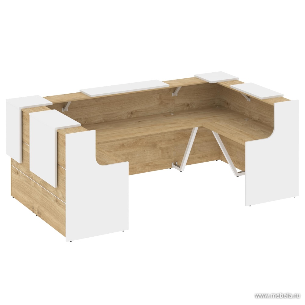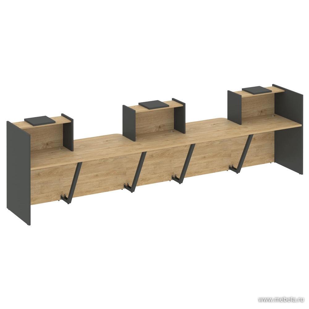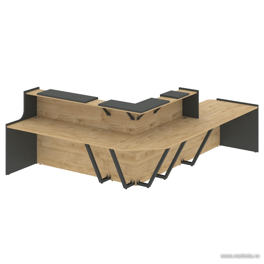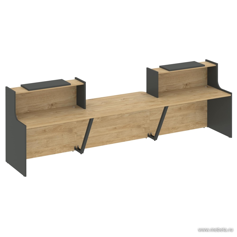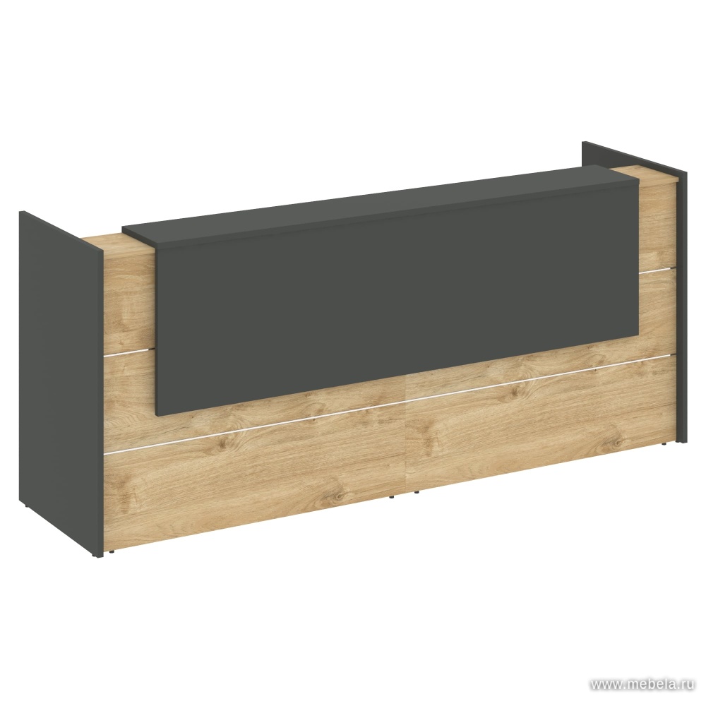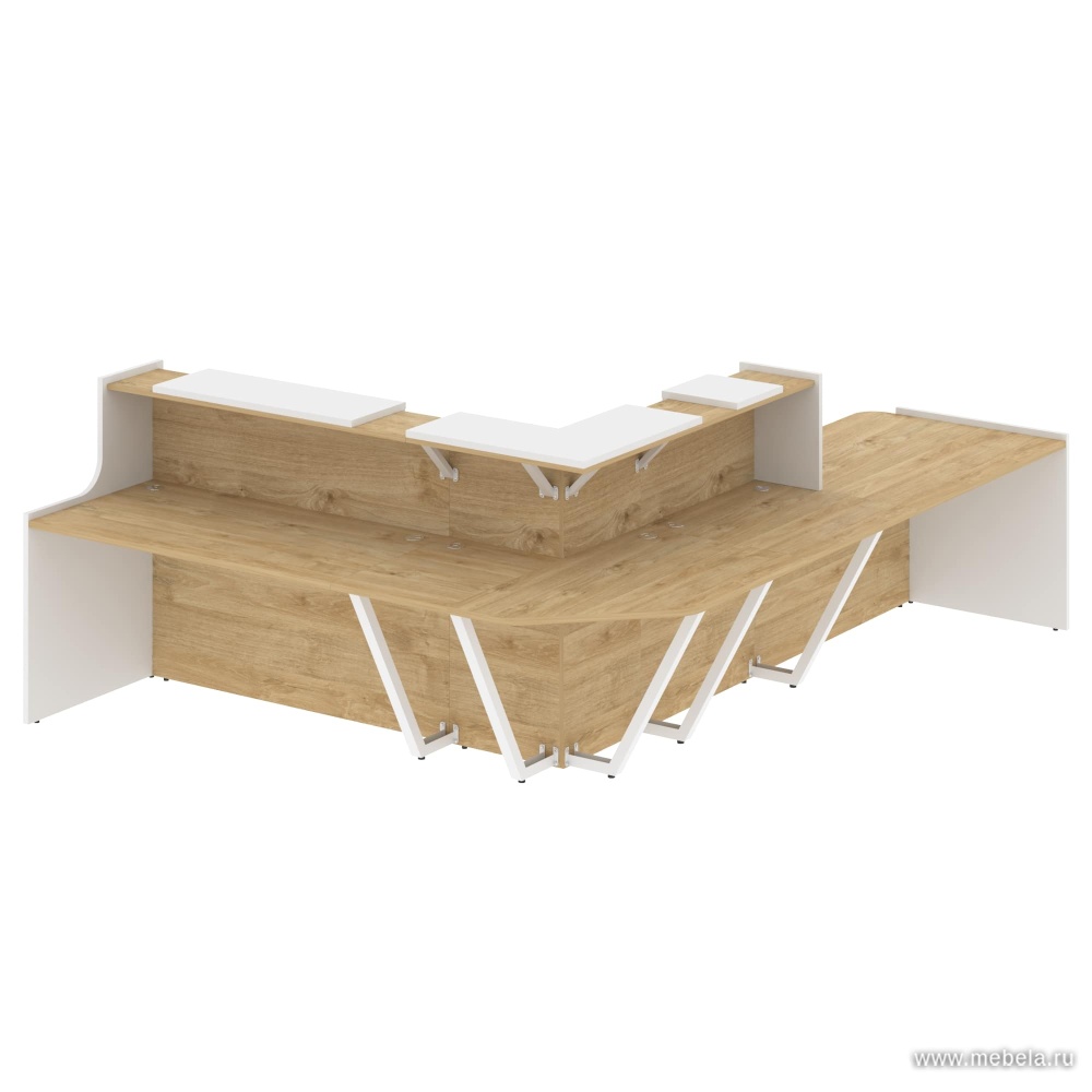 Ресепшн Onix в цвете тиквуд выполнена в эргономичном и современном стиле. Оригинальные геометрические модули и возможность объединения нескольких контрастных декоров придают стойке визуальную легкость и стиль. Модные цвета древесного декорирования в сочетании с белым цветом опор столешницы и топа освежают интерьер. ...