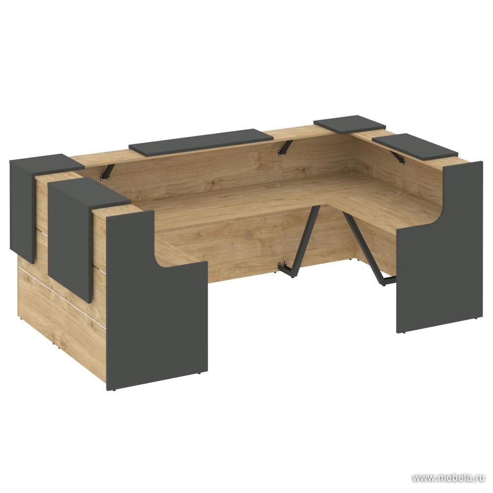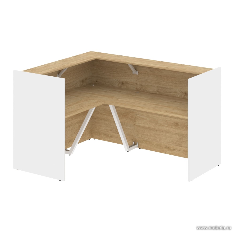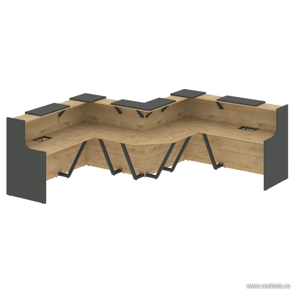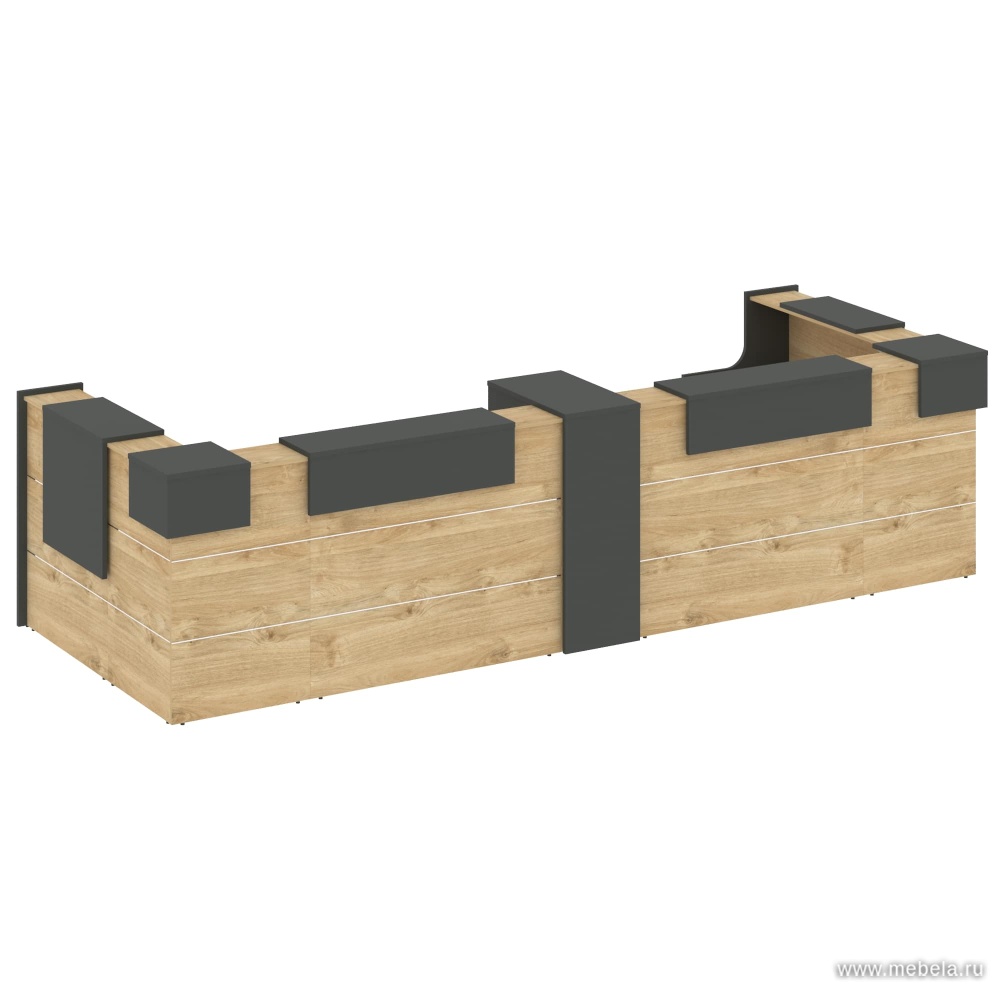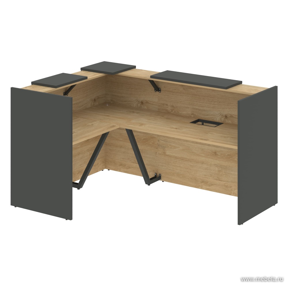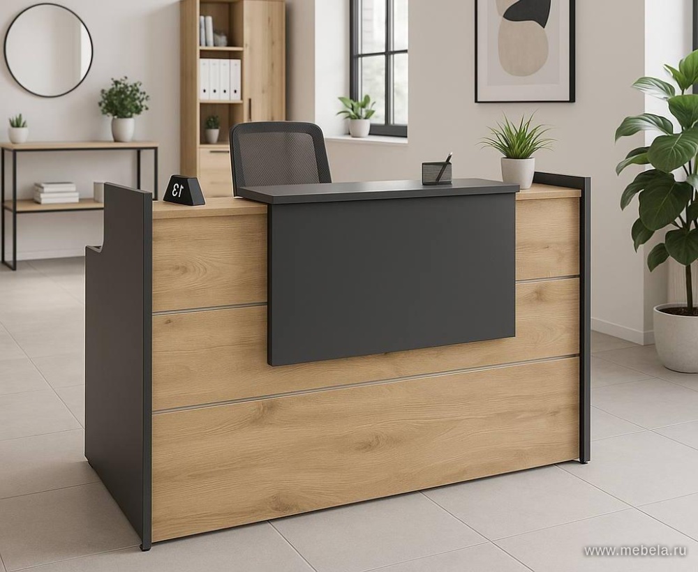 Ресепшн Onix в цвете тиквуд выполнена в эргономичном и современном стиле. Оригинальные геометрические модули и возможность объединения нескольких контрастных декоров придают стойке визуальную легкость и стиль. Модные цвета древесного декорирования в сочетании с белым цветом опор столешницы и топа освежают интерьер. ...
