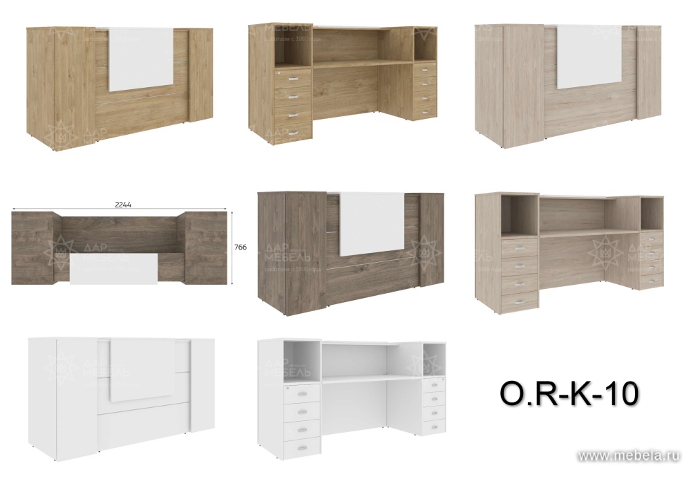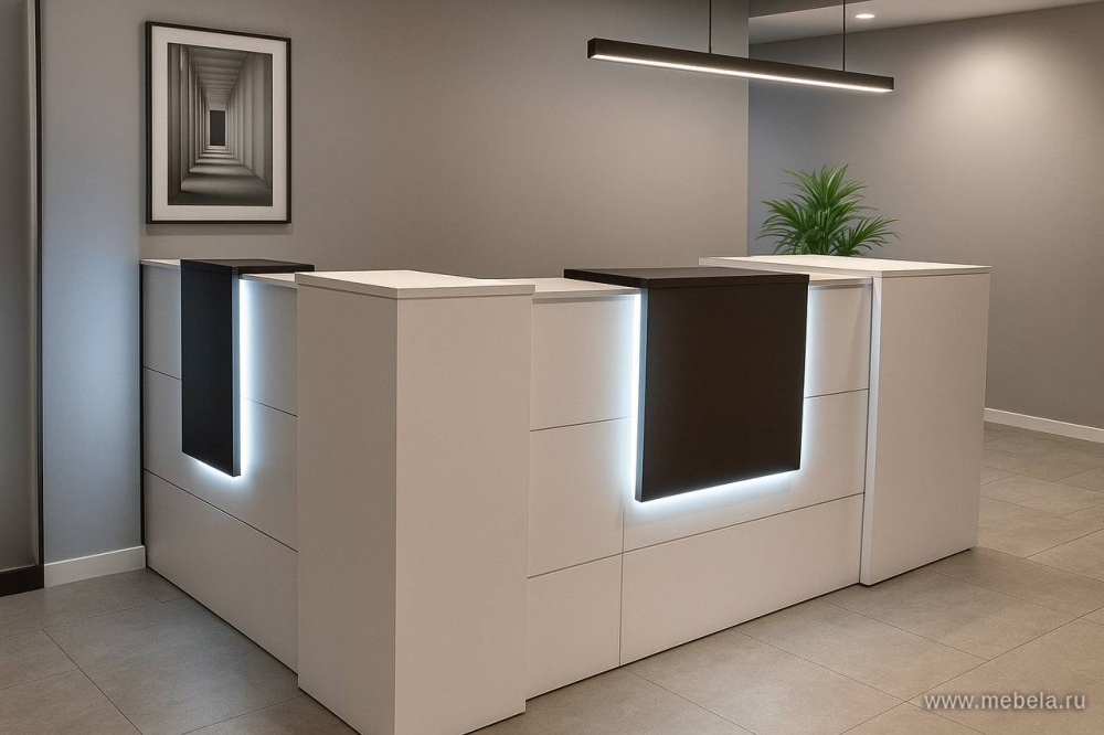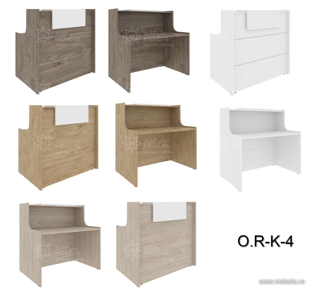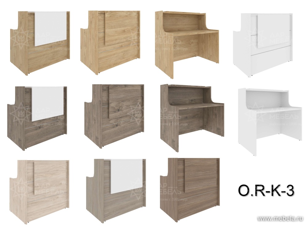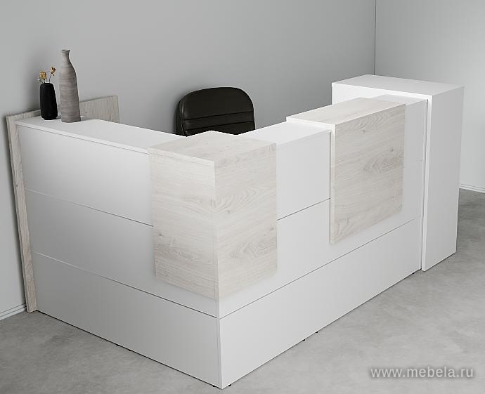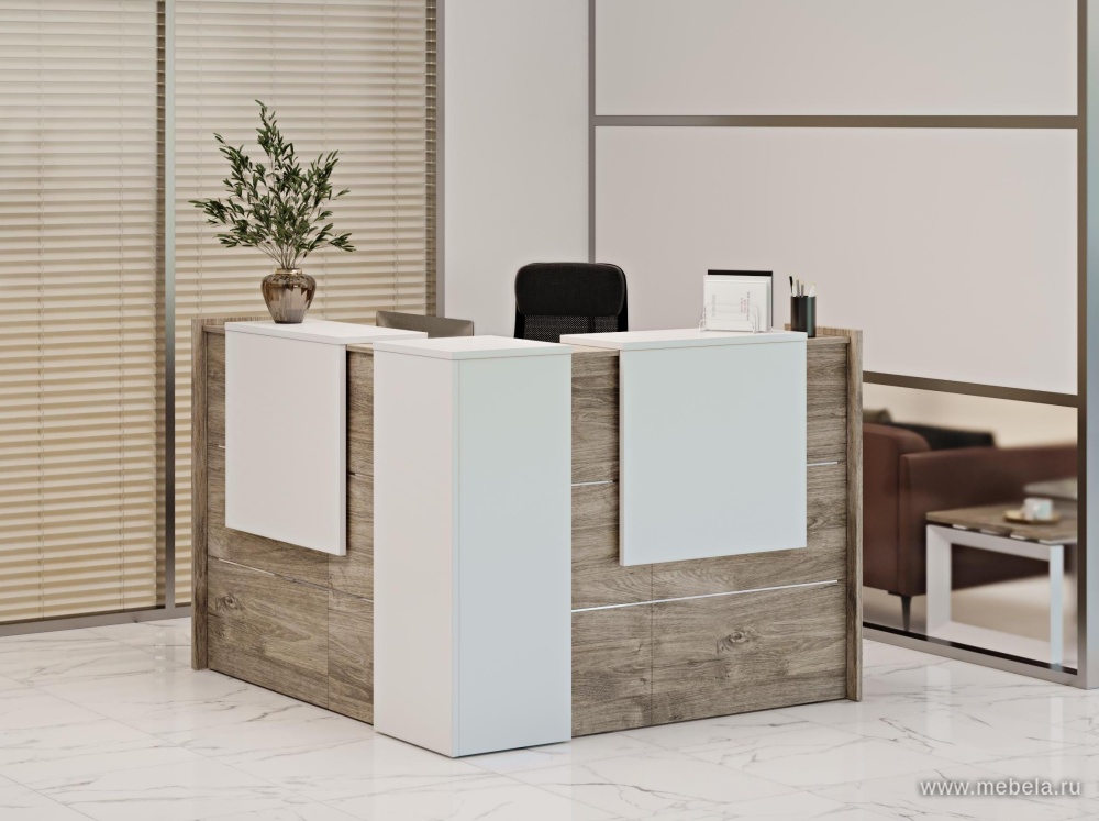 Стойка ресепшн Onix выполнена в эргономичном и современном стиле. Оригинальные геометрические модули и возможность объединения нескольких контрастных декоров придают стойке визуальную легкость и стиль. Модные цвета древесного декорирования в сочетании с белым цветом опор столешницы и топа освежают интерьер.