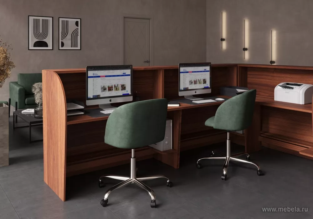 Стойка ресепшн Rapid - лучшее подтверждение солидности, надежности и респектабельности компании. Прямые линии смягчены закругленными углами столешницы. Эта мебель представлена двумя вариантами модулей, с помощью которых можно самостоятельно подобрать административную стойку, исходя из размеров помещения.