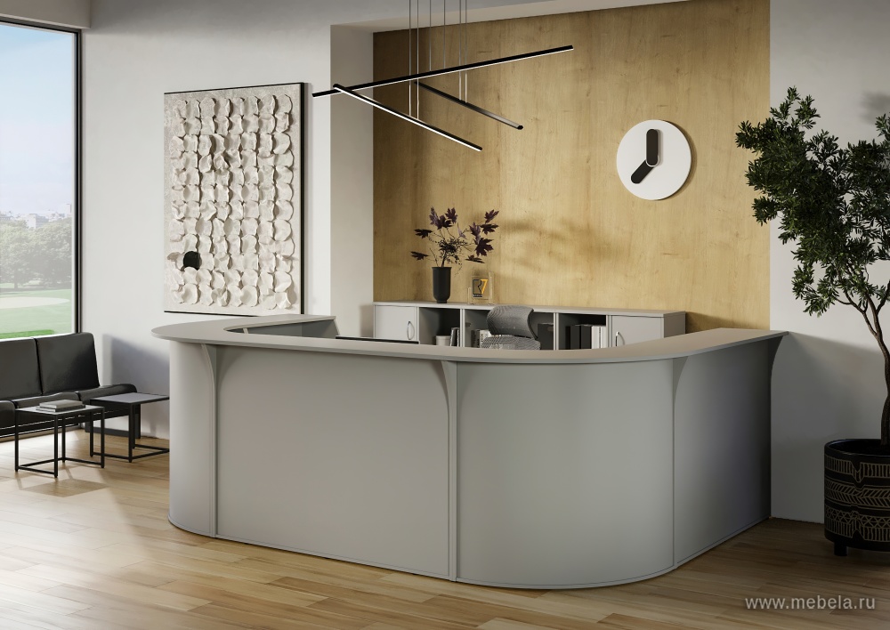 Серые цвета стойки ресепшн RIVA Grey идеально подойдут для оформления приемных медицинских учреждений или любых других компаний, желающих подчеркнуть свою открытость перед посетителями. Использование европейских материалов и российской сборки обеспечивают высокое качество по доступной цене.
