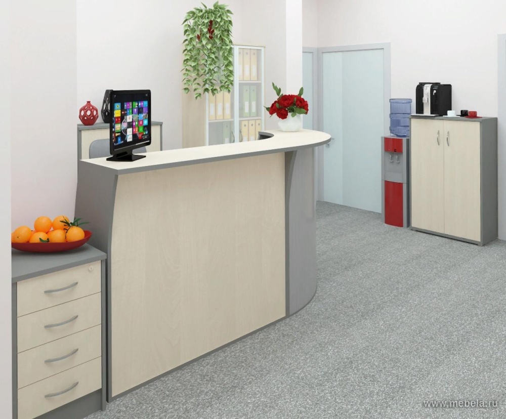 Легкость, чистота и открытость своим клиентам – вот какие образы формирует стойка ресепшн RIVA клён металлик при первом взгляде зашедших в вашу приемную людей. Светлые цвета клена расширяют пространство помещения и излучают радушие, а вставки цвета металлик подчеркивают современность образа.