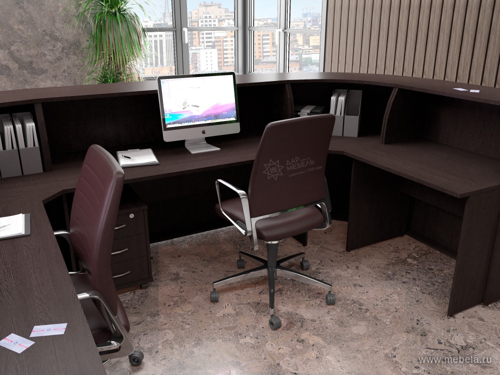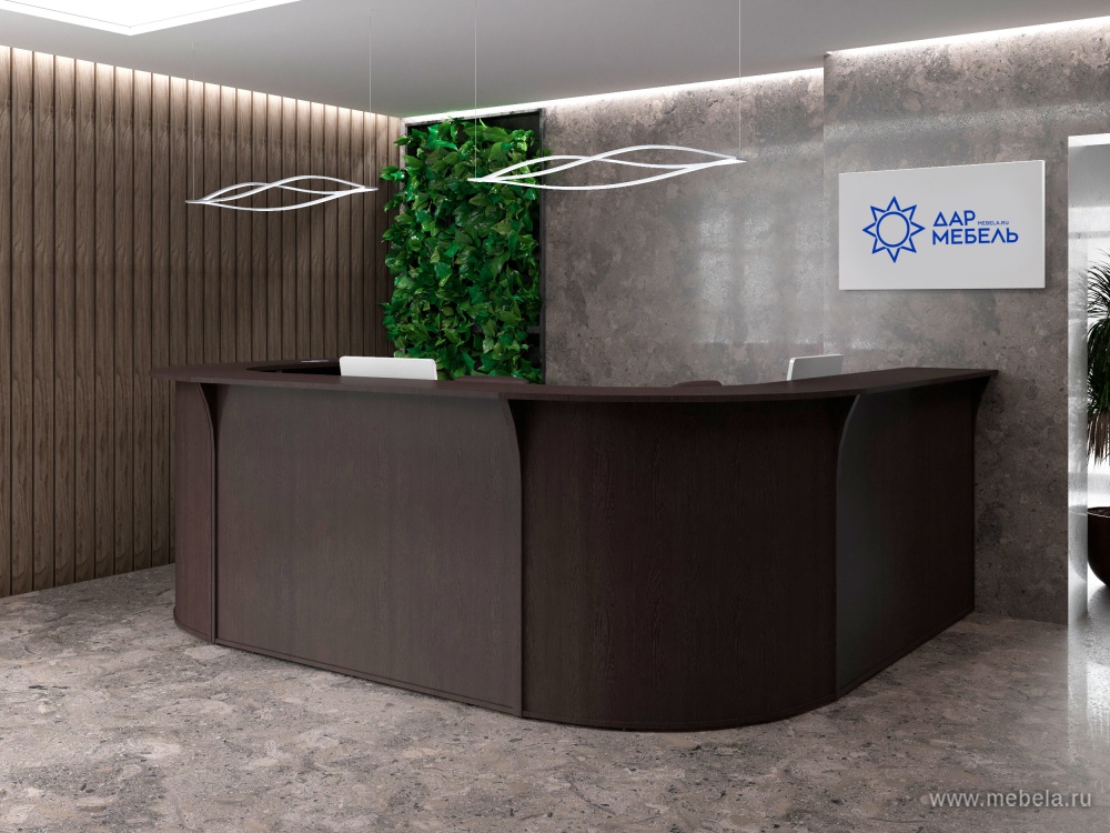 Если вам нужно подчеркнуть солидность и современный стиль приемной вашего офиса, то стойка ресепшн RIVA Венге подходит для этих целей идеально. Сразу 2 варианта позволяют сделать или строгий стиль в темном цвете венге или преобразить его Хай-Тек решением с помощью металлический наборных элементов.