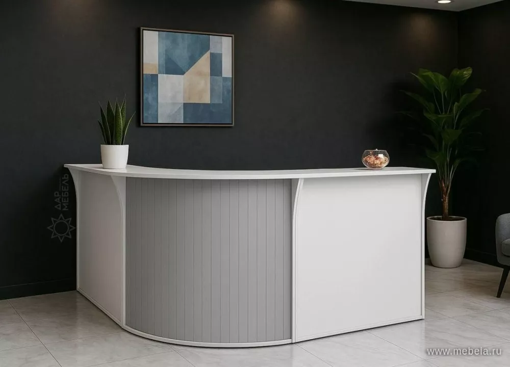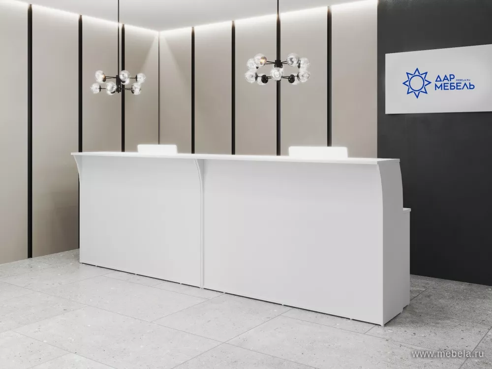 Чистые белые цвета стойки ресепшн RIVA White идеально подойдут для оформления приемных медицинских учреждений или любых других компаний, желающих подчеркнуть свою открытость перед посетителями. Использование европейских материалов и российской сборки обеспечивают высокое качество по доступной цене.