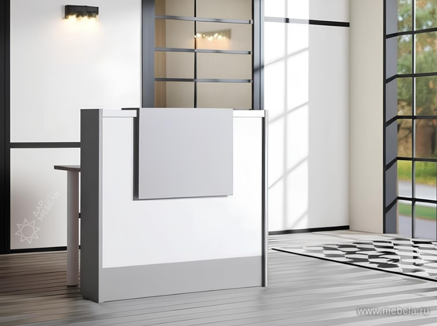 Стильный современный вид стойки ресепшн Style Grey позволяет создать модный и динамичный интерьер в своей приемной. Совместимость отдельных секций поможет сделать стойку любой нужной длины, чтобы сотрудникам и посетителям было предельно комфортно. Ламинированное покрытие защитит от загрязнений.
