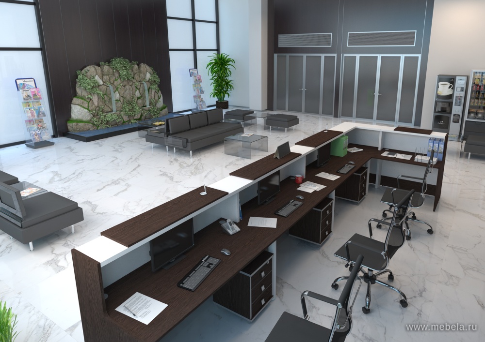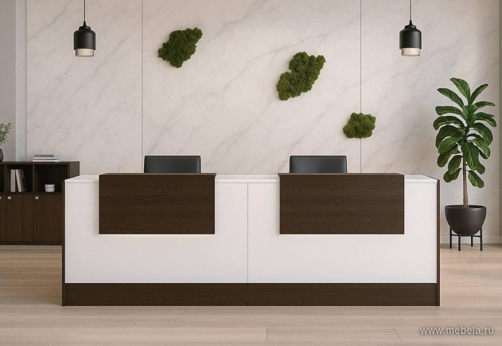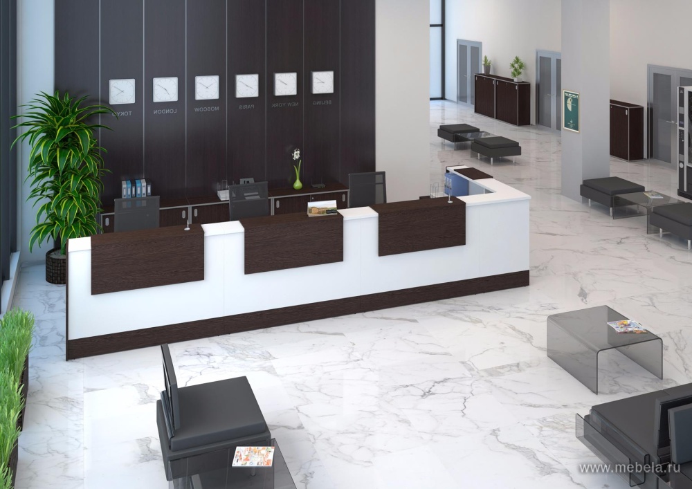 Стильный современный вид стойки ресепшн Style Wenge (Стайл Венге) позволяет создать модный и динамичный интерьер в своей приемной. Совместимость отдельных секций поможет сделать стойку любой нужной длины, чтобы сотрудникам и посетителям было предельно комфортно. Ламинированное покрытие защитит от загрязнений.