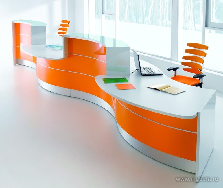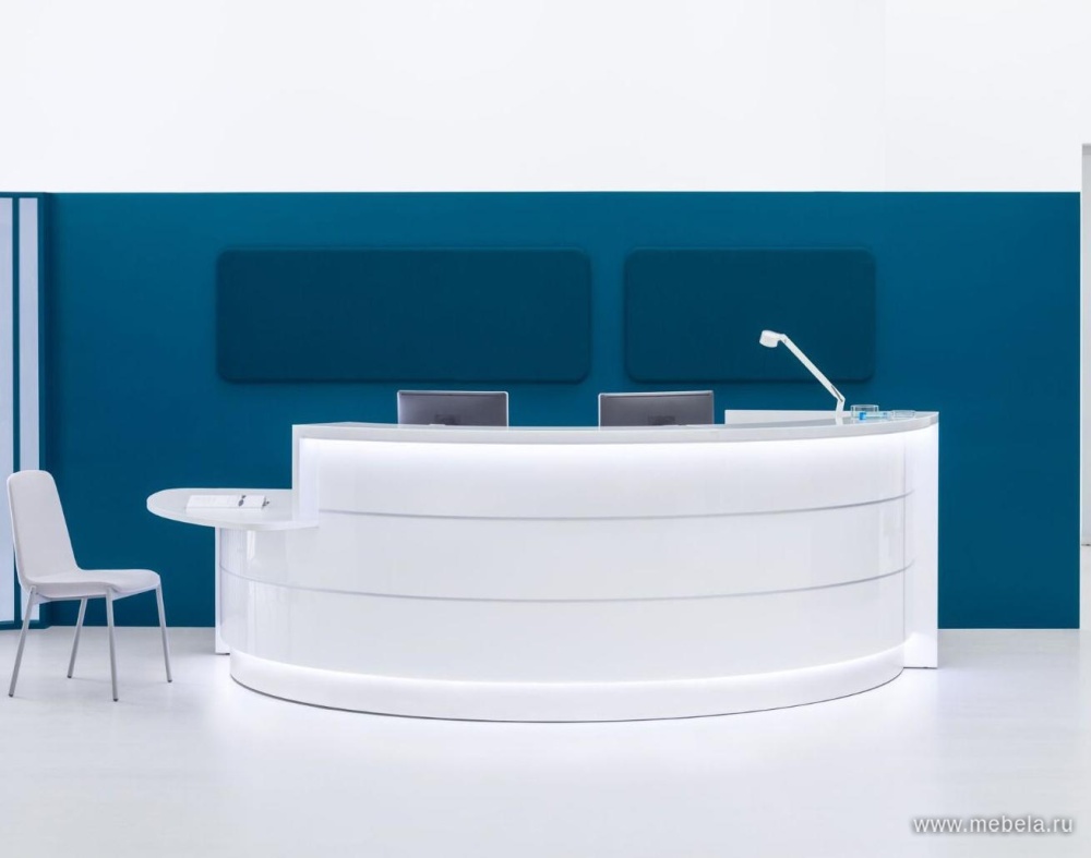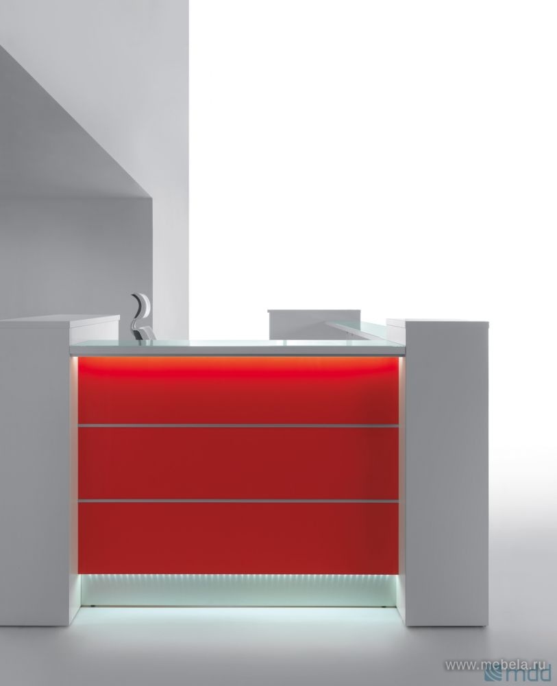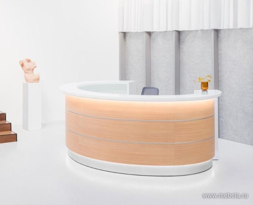 Представлена в восьми цветах. Трех классических: белый, каштан, канадский дуб и пяти ультра-ярких: зеленый, розовый, бордовый, желтый и оранжевый. Кроме цвета, у покупателя также есть выбор формы ресепшена. Доступно два варианта исполнения: полукругом и квадратом. Подсветка по периметру придает ...