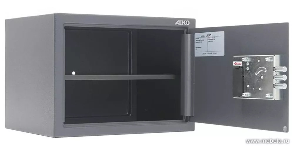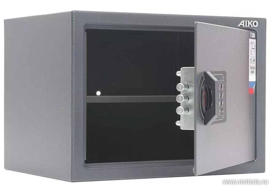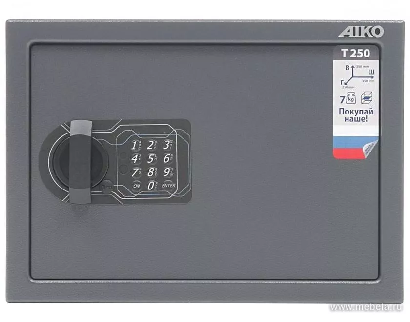AIKO T-250 EL - надежный мебельный сейф, который прекрасно подойдет для офиса и домашнего использования. Он надежно сохранит документы, деньги или ценные вещи от несанкционированного использования. Толщина материала для стенок составляет 1,2 мм, дверь усиленная - её толщина составляет 2,8 мм.