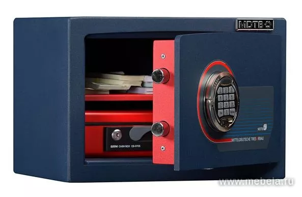Небольшой сейф объемом 18 литров, произведенный в Германии. Отличается стильным дизайном: внешние поверхности покрыты темно-синей краской, а внутренние – красной. Такой контраст в сочетании с прямоугольной формой придают модели необычный, презентабельный, нескучный вид. Будет хорошо смотреться с мебелью в любом стиле. ...