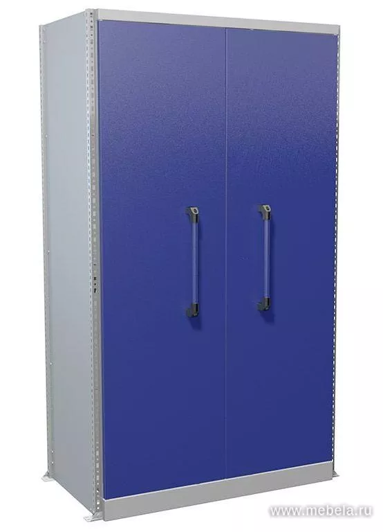 Металлический шкаф для хранение крупного оборудования: сварочного аппарата, огнетушителей или материалов. Модель отличается вместительностью, но при этом занимает всего около двух квадратных метров. Компактность достигается за счет ширины.