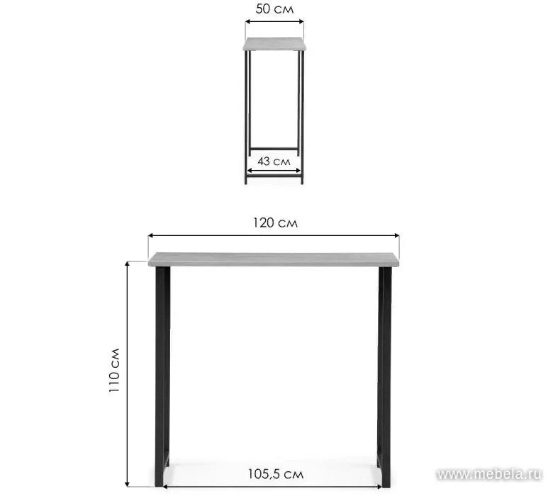 Ножки стойки выполнены из прочного черного металла, что обеспечивает ей стабильность и долговечность. Столешница изготовлена из ЛДСП и имеет цвет бетона, что придает стойке современный и стильный вид.