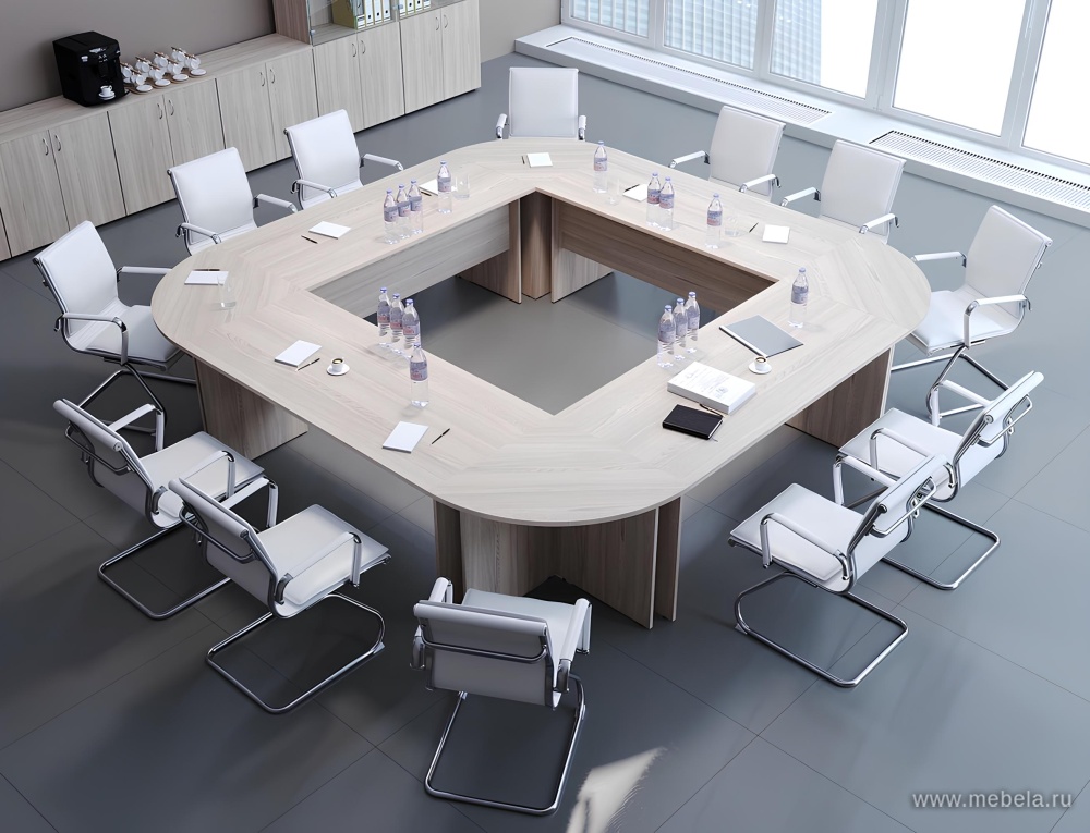 Благодаря столам для переговоров Агат получится организовать пространство любой сложности и геометрии. Всего 2 элемента гарнитура поможет сформировать желаемую форму на усмотрение пользователя благодаря полной совместимости деталей друг с другом.