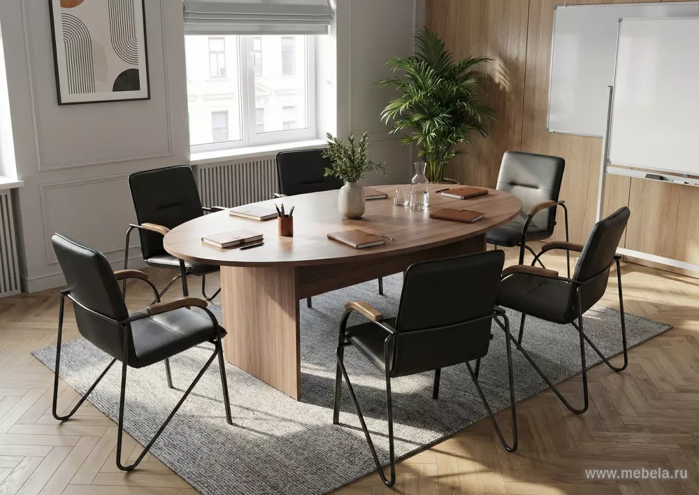 Большинство коллекций предлагает какой-то один принцип построения пространства конференц-зала. Но столы для переговоров “Арго” предоставляют возможность только вам решать, каким будет эта зона – овальной, круглой или прямоугольной, потому что в их коллекции есть самые разные элементы.