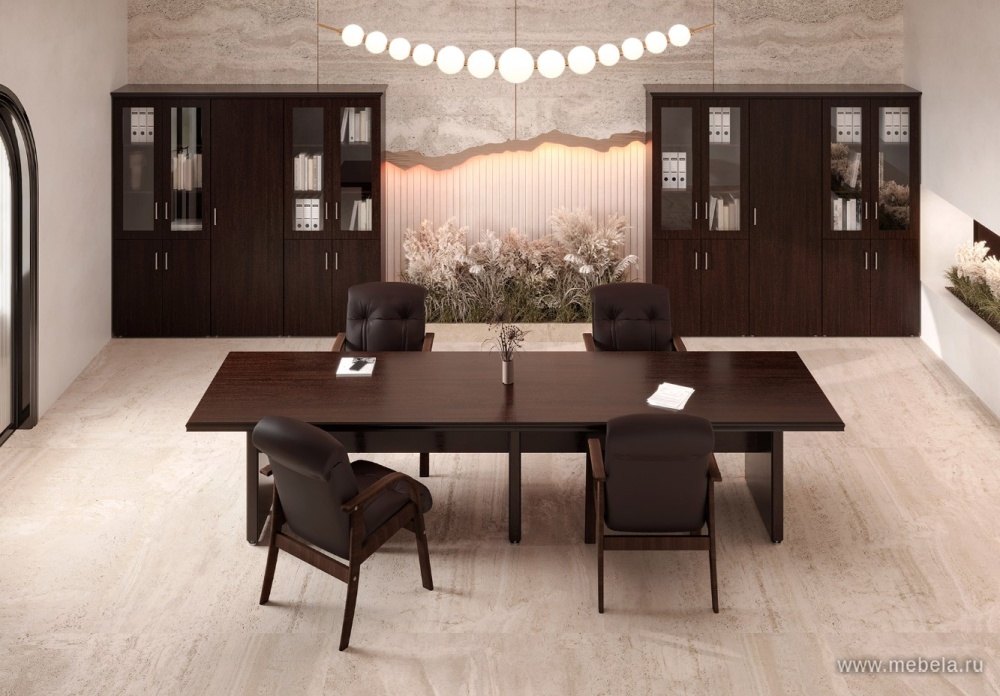 Стол для переговоров Boston - это отличное сочетание солидности и элегантности, что позволяет отразить высокий уровень профессионализма и успешности компании. Стол создает уют и гармонию, а отсутствие лишних деталей поможет достичь предельной внимательности двух сторон-партнеров на совещаниях и деловых встречах.