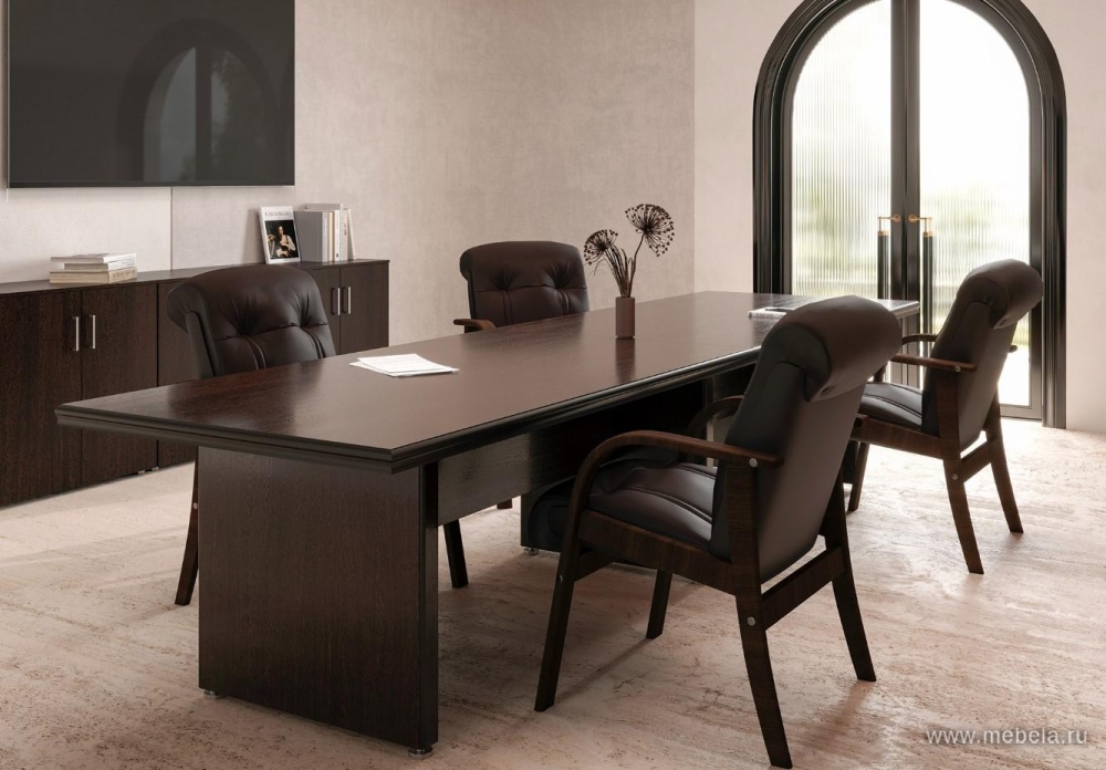 Стол для переговоров Boston - это отличное сочетание солидности и элегантности, что позволяет отразить высокий уровень профессионализма и успешности компании. Стол создает уют и гармонию, а отсутствие лишних деталей поможет достичь предельной внимательности двух сторон-партнеров на совещаниях и деловых встречах.