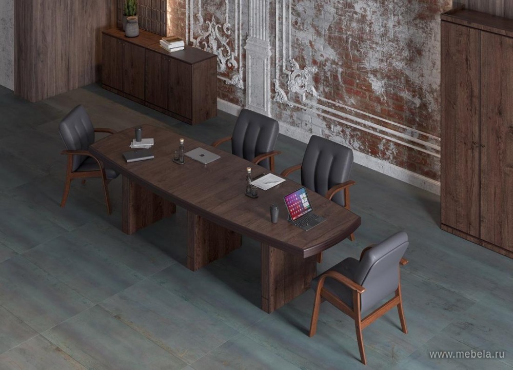 Вместительный трехметровый стол для переговоров Кэпитал (Capital) прекрасно подойдет для оборудования приемных руководителей высшего звена. Его стиль убедительно и без лишней мишуры заявляет о своей респектабельности с помощью палисандрового цвета материалов и предельно массивной столешницы с из...