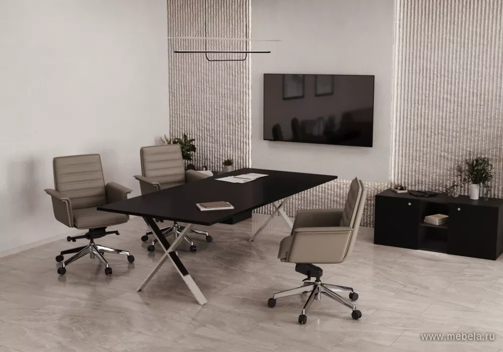 Столы для переговоров Cross в цвете чёрный бальзат - это отличное решение для создания комфортной и стильной рабочей среды. Благодаря прочной конструкции и современному дизайну, они станут надежным и функциональным приобретением для вашего офиса.