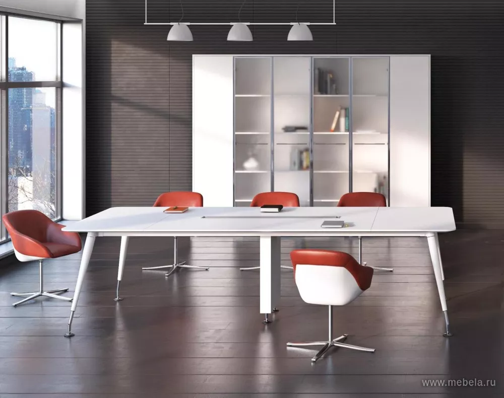 Стол для обустройства зоны переговоров и заседаний модели Emporio - отличный выбор для офисного интерьера. Он удобный и практичный, выглядит презентабельно и выдерживает любые, даже значительные нагрузки. У него необычный и лаконичный дизайн, а также удобная форма.