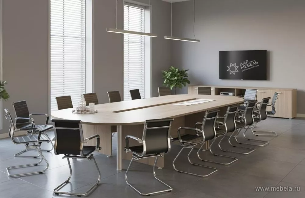 Классические переговорные столы Grand позволят создать зоны для совещаний в офисах любой площади, конфигурации и с самым разным количеством участников. В дизайне используются только классические линии и типы отделки мебели, что вместе с внушительной толщиной столешниц придает комплекту солидности.