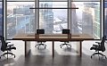Темно-ореховый стол переговоров в классическом стиле. Прямоугольные формы в сочетании с черной вертикальной полосой, проходящей через центр стола по всей длине, создают ощущение свободы, демократичности. Но одновременно с этим, три крепкие опоры из деревянных пластов подчеркивают устойчивость и стабильность компании. ...