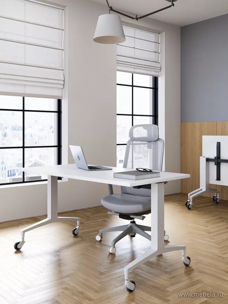 Складные столы Setup позволяют фиксировать столешницы так, чтобы в горизонтальном положении рабочая поверхность не имела наклона, тем самым обеспечив комфортные условия труда для всей команды. Стойкие опоры на колесах со стопорами, на которых держится вся конструкция, способны выдержать большой в...