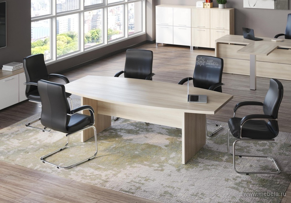 Высокое качество материалов европейского уровня, помноженное на стильный современный дизайн, создало столы для переговоров “Ялта”. Яркий открытый стиль из экологически чистых ламинированных панелей, покрытых меламиновой пропиткой для максимально длительного срока службы – этот мебельный гарнитур безупречен во всем.