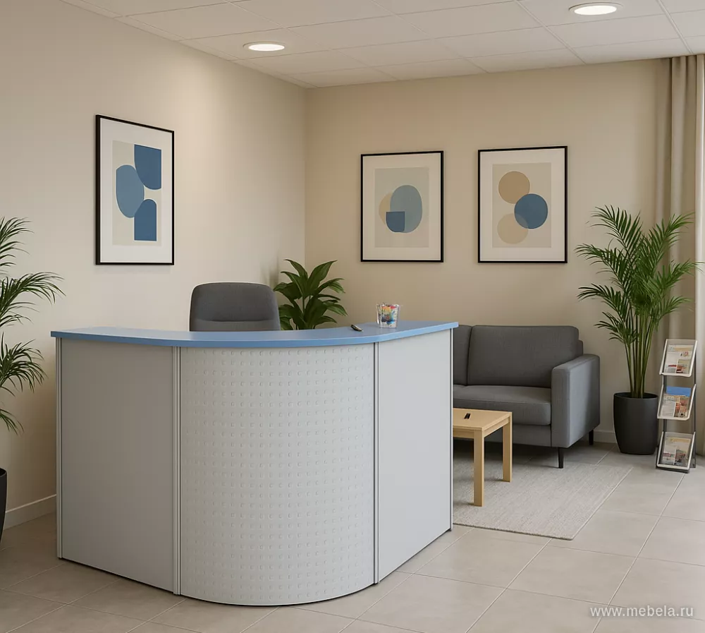 Элегантная стойка администратора Эдем позволит создать замечательную приемную зону в любом общественном заведении. В модели воплощены самые передовые дизайнерские идеи современных мебельных производителей. Необычная форма стойки с гнутой фасадной частью из металлизированного пластика придаст приемной особый шарм.